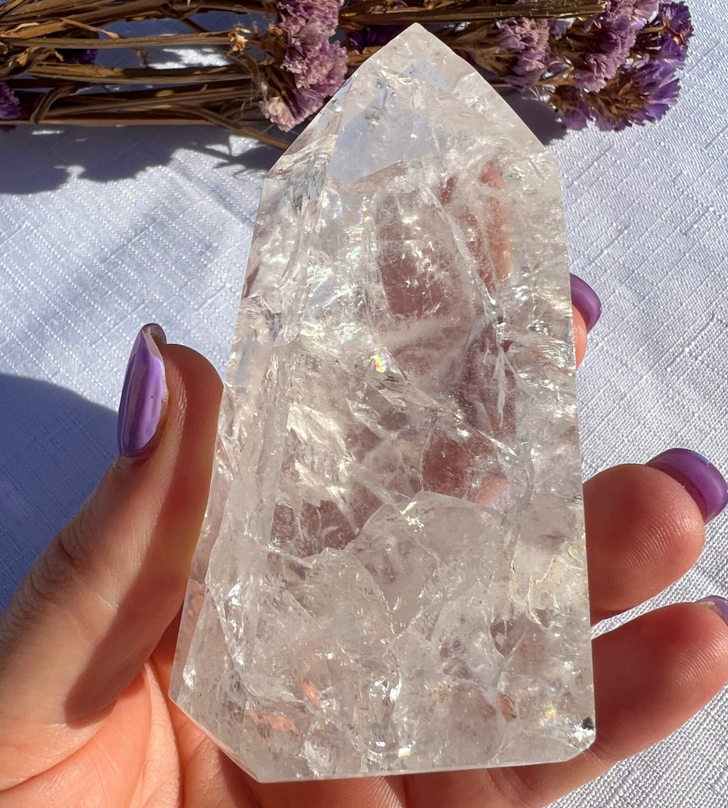 Also known as Fire and Ice Quartz it contains multiple rainbows within. Quartz is the master healer of the crystal world. It contains two elements light/dark with Yin/Yang energies to bring harmony.