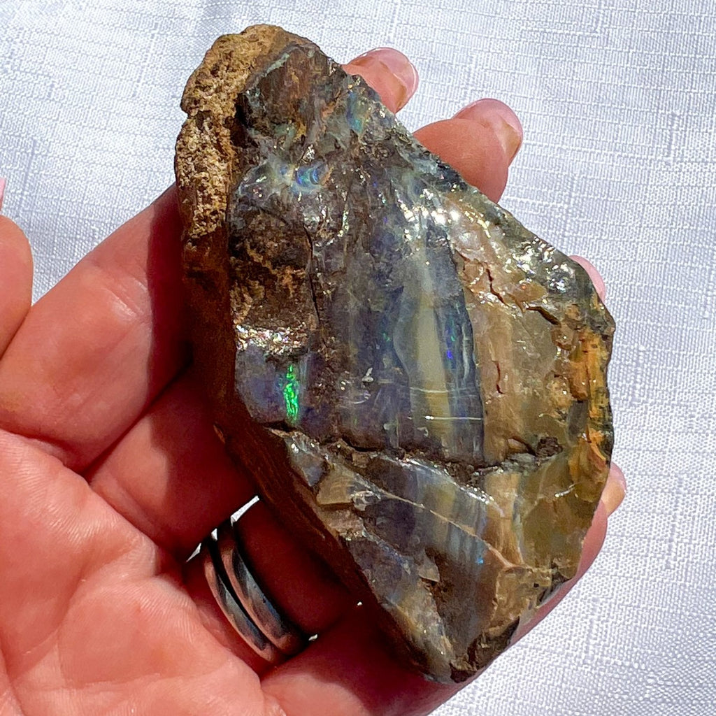 Boulder opal is a rock that contains seams and patches of Opal surrounded by or attached to its natural host rock.