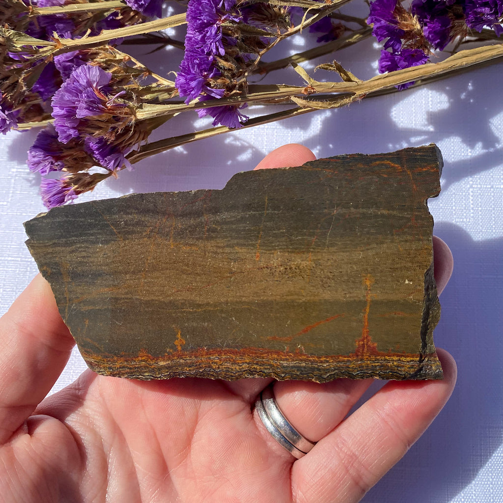 The trio of minerals that make up this stone can give you a centering and calming energy, which makes tiger iron a very powerful grounding stone.