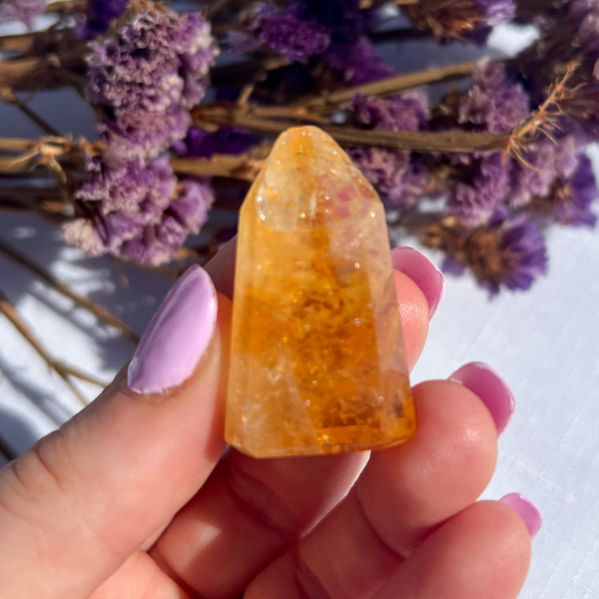 Introducing the Citrine Point Mini - the stone of abundance and joy! Energise your space with this powerful little crystal, empowering you to manifest success, wealth, and confidence.