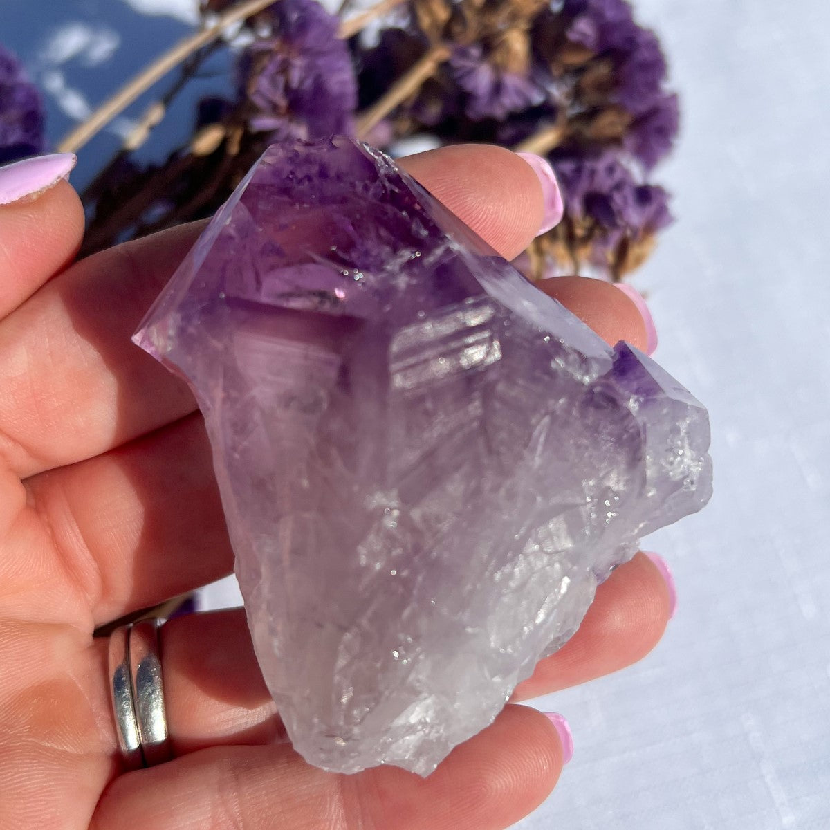 Natural Amethyst Points are the perfect remedy for a chaotic life! Let the crystal's soothing powers calm your stress and balance your mood. Don't forget to take a moment to reflect and nurture your inner spirit - Amethyst will boost your spiritual awareness and help you open up to intuition. All of this in one chic, medium-sized piece. What a gem!